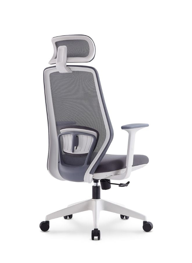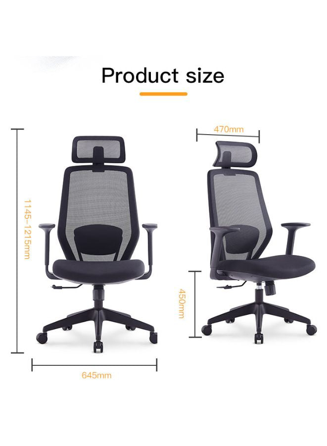كرسي مكتب شبكي مريح مع مسند رأس قابل للتعديل، ومقعد من الإسفنج المصبوب عالي الكثافة، ومسند ذراع ثابت، وآلية إمالة