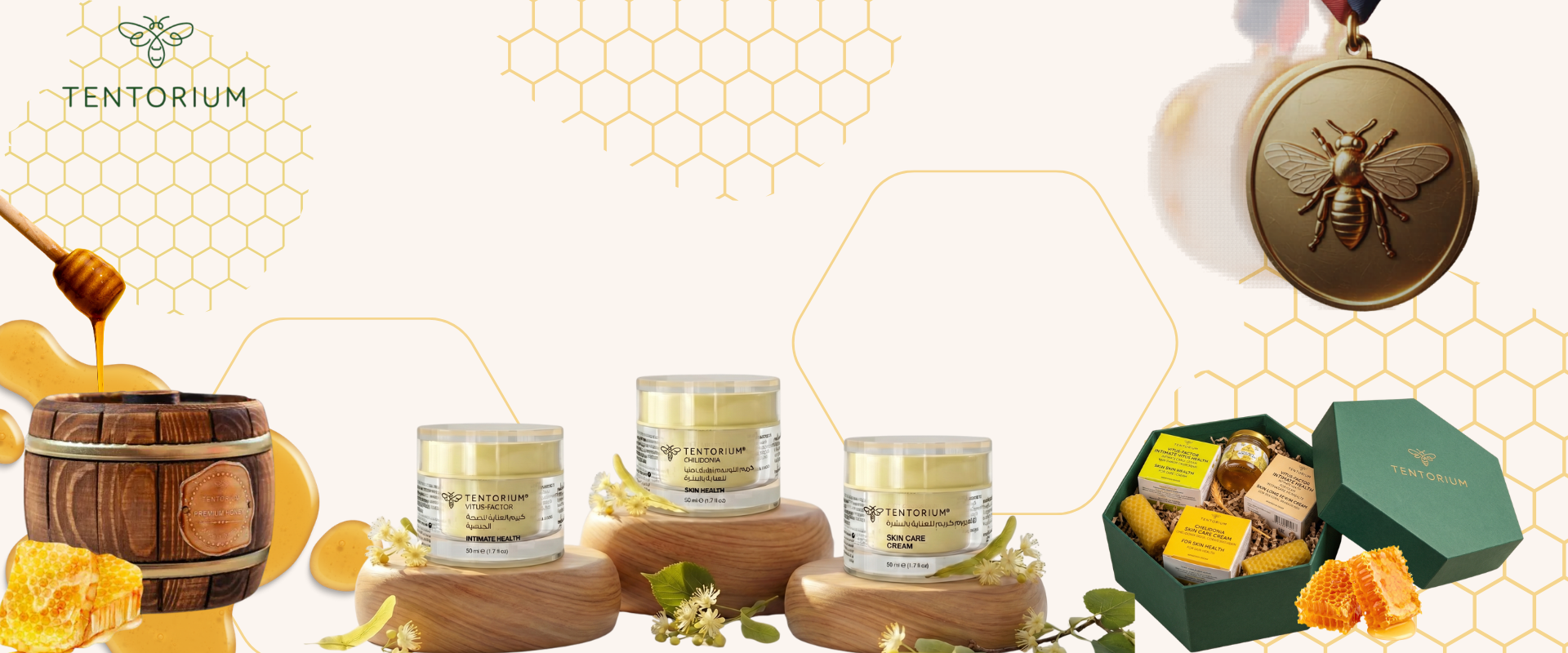 Tentorium 4 Piece Natural Skincare and Honey Set with Chilidonia Cream, Honeybee Venom Massage Cream, Vitus Factor Hydrating Cream and Siberian Linden Raw Honey
