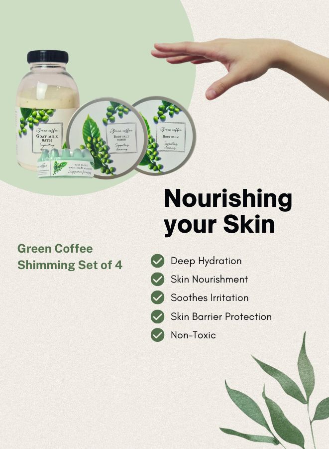 This 4-piece gift set is designed to enhance your skincare experience, making it perfect for those seeking natural solutions for smoother, healthier-looking skin. Harnessing the power of green coffee for weight loss, the bath milk provides a soothing soak that hydrates and rejuvenates your skin while helping to reduce the appearance of cellulite. The Coffee Body Scrub gently exfoliates, revealing a fresher, smoother complexion.