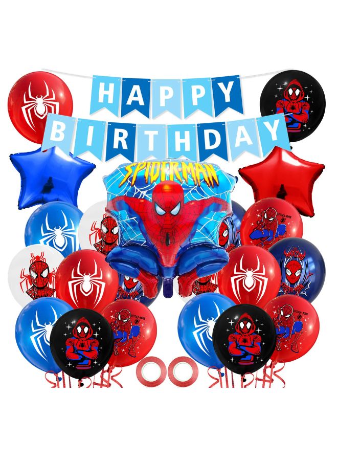 - Complete Decoration Kit – Includes 1 Happy Birthday banner, 1 Spiderman foil balloon, 2 star foil balloons, 2 ribbons, and 18 colorful latex balloons