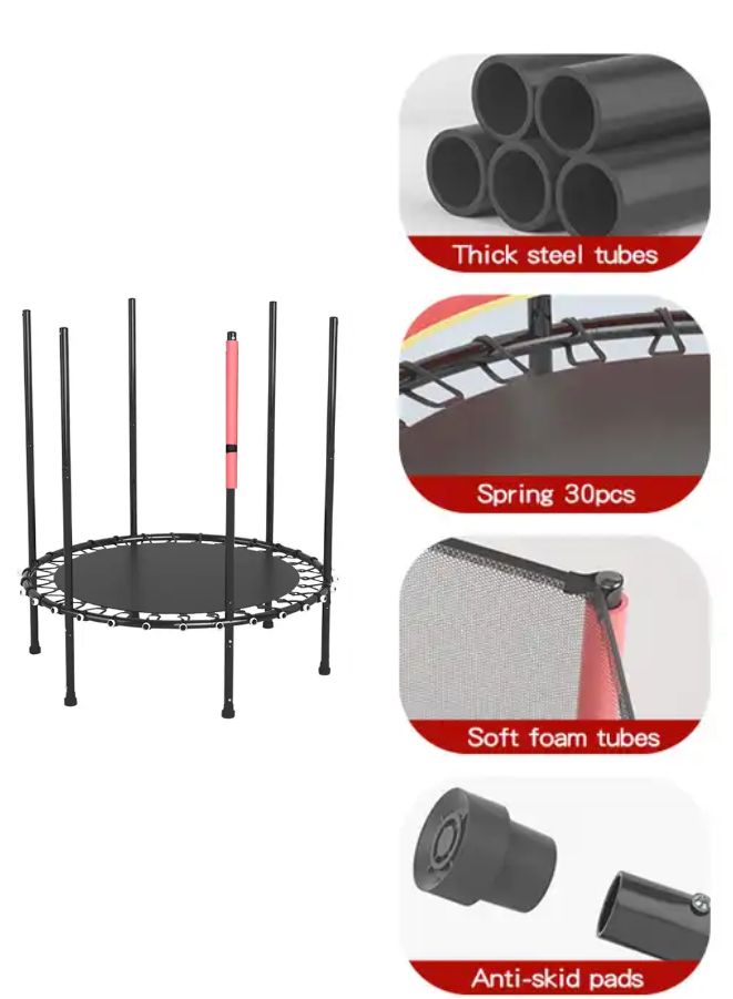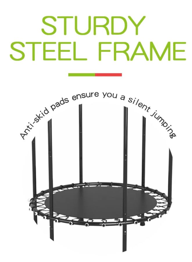 ترامبولين ممتاز للاستخدام الداخلي والخارجي - إطار مقاوم للصدأ، حصيرة سوداء متينة، مثالية للأطفال النشيطين