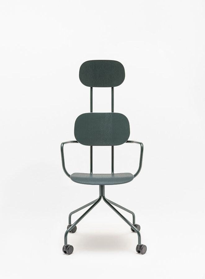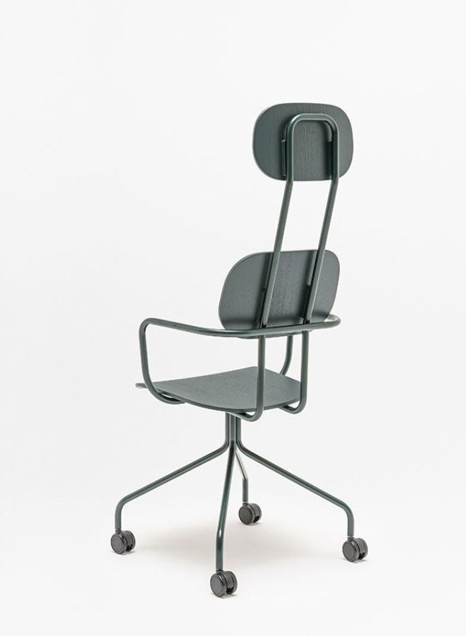 Introducing the New School Plywood Chair with Headrest and Fixed Base with Castors, a versatile and ergonomic seating solution designed to meet the demands of various environments. With a seat height of 460 mm, this chair perfectly matches standard table heights, providing optimal comfort for prolonged use. The integrated headrest extends from the backrest, offering full support for the user's entire back, enhancing overall comfort and posture.