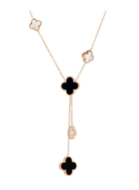 قلادة أنيقة على شكل صدفة البرسيم باللونين الأحمر والأسود على الوجهين للنساء - جمال خالد من الفولاذ المقاوم للصدأ عيار 18 قيراط