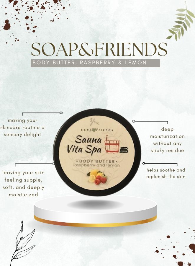- تهدئة ما بعد الساونا: يوصى باستخدامها خصيصًا بعد جلسات الساونا، حيث تساعد زبدة الجسم هذه على تهدئة البشرة وتجديدها، ومكافحة الجفاف واستعادة الحيوية.