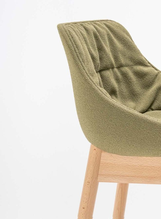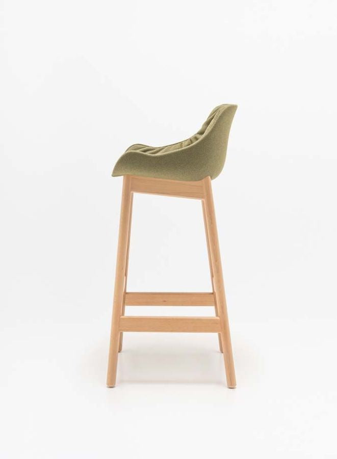 The Baltic Soft Duo High Stool with Wooden Base combines comfort with a unique, attention-grabbing design, making it a versatile choice for both professional and residential spaces. The seat is upholstered with a soft cushion that ensures comfort even during extended periods of sitting, while the draped upholstery adds an unusual and eye-catching aesthetic. Integrated armrests enhance sitting comfort, and the classic four-legged wooden base provides stability and a cosy atmosphere.