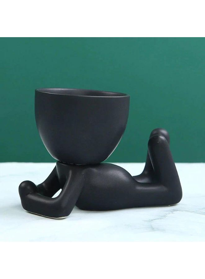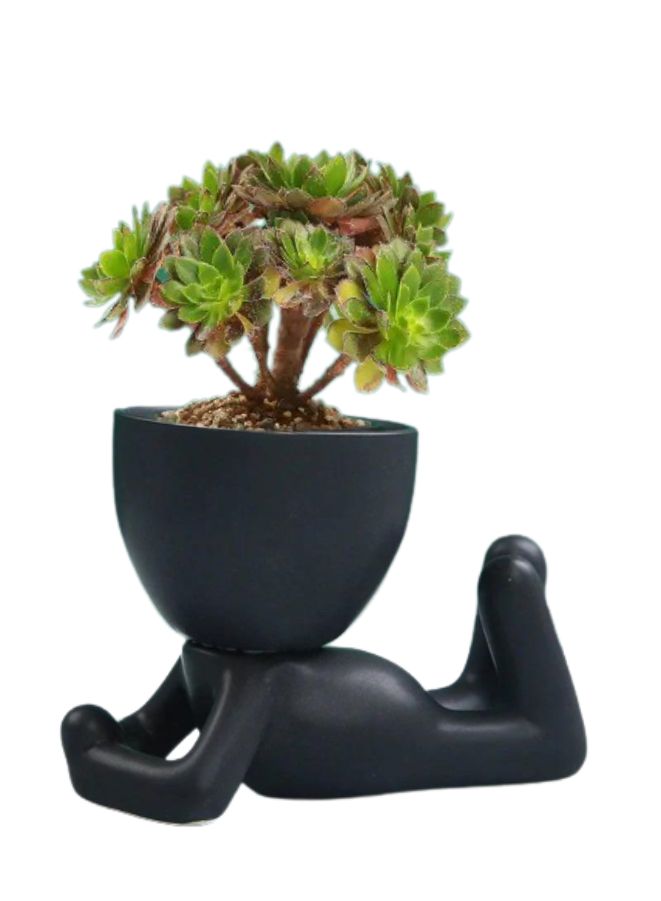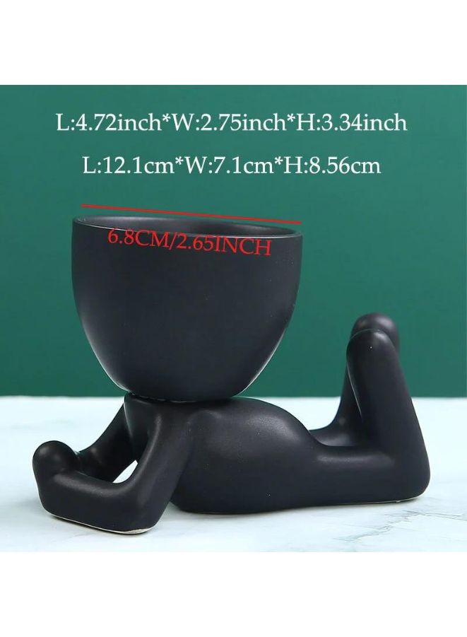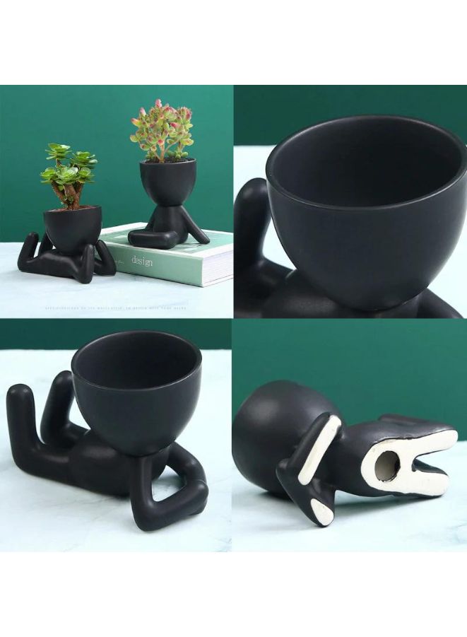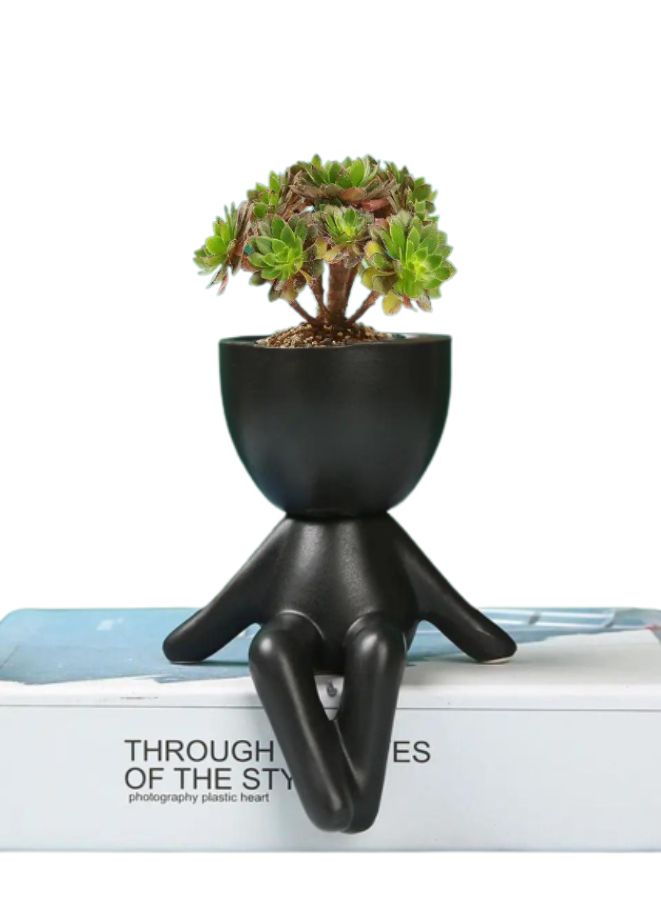 أصيص نباتات خزفي صغير على شكل إنسان - أصيص صبار أسود مزخرف للنباتات العصارية والمكتب وديكور غرفة المعيشة (النبات غير متضمن)