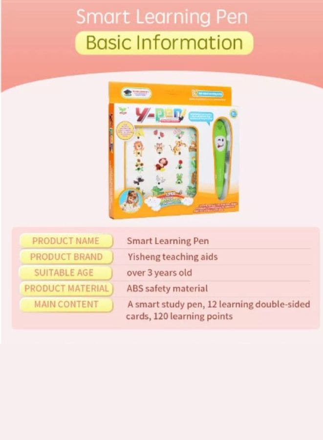 يحتوي كتاب التعلم الإلكتروني على مجموعة متنوعة من المواضيع وطرق اللعب لأطفالك لتطوير مهاراتهم المعرفية. تتضمن هذه المحتويات الأبجدية الإنجليزية، والفواكه الشائعة، وأدب المركبات، وأغاني الحضانة الكلاسيكية، والأرقام البسيطة، وحديقة الحيوانات، وعنوان الشخص، والقصة المضحكة.