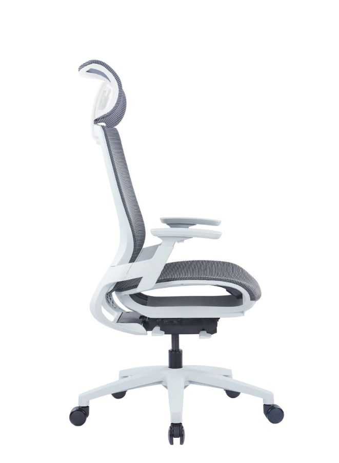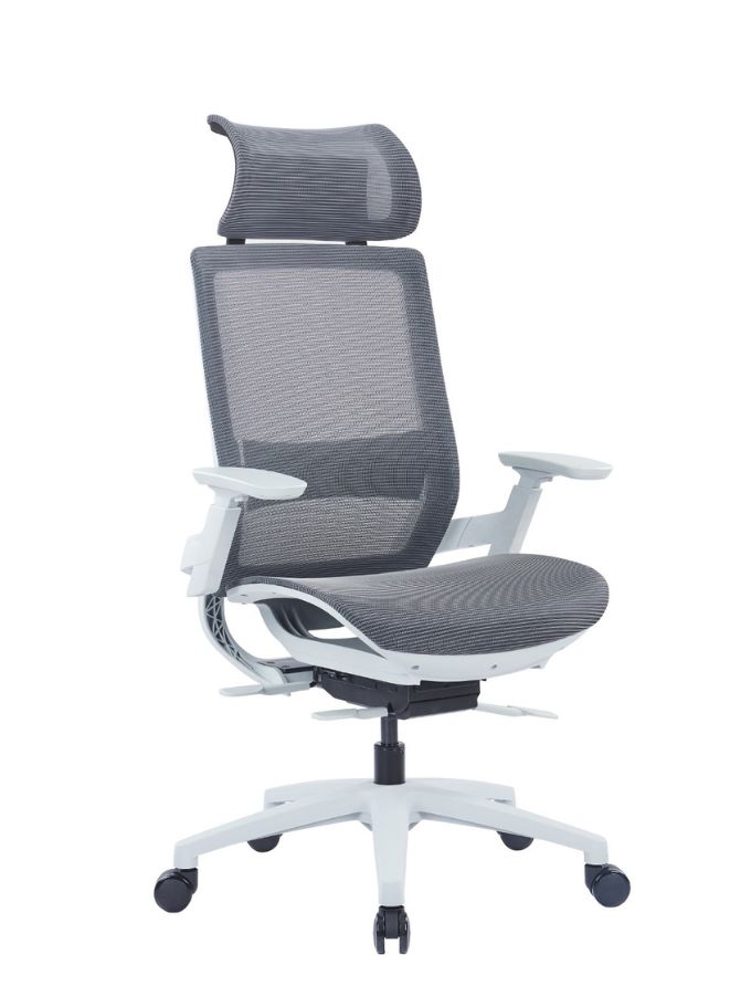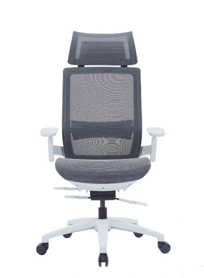 كرسي مكتب شبكي رمادي مريح مع مساند للذراعين قابلة للتعديل وآلية قفل بأربعة أوضاع للمنزل أو المكتب