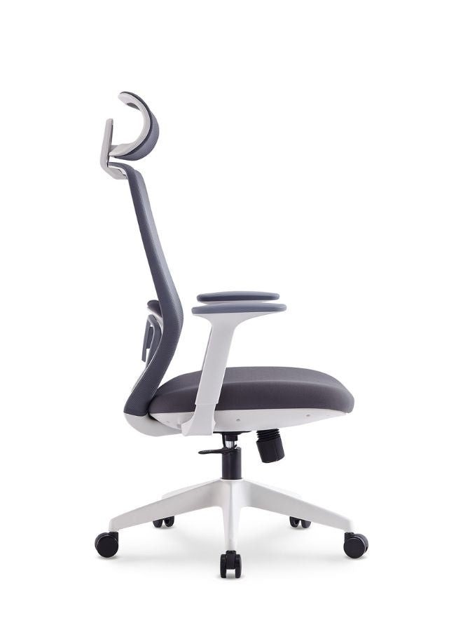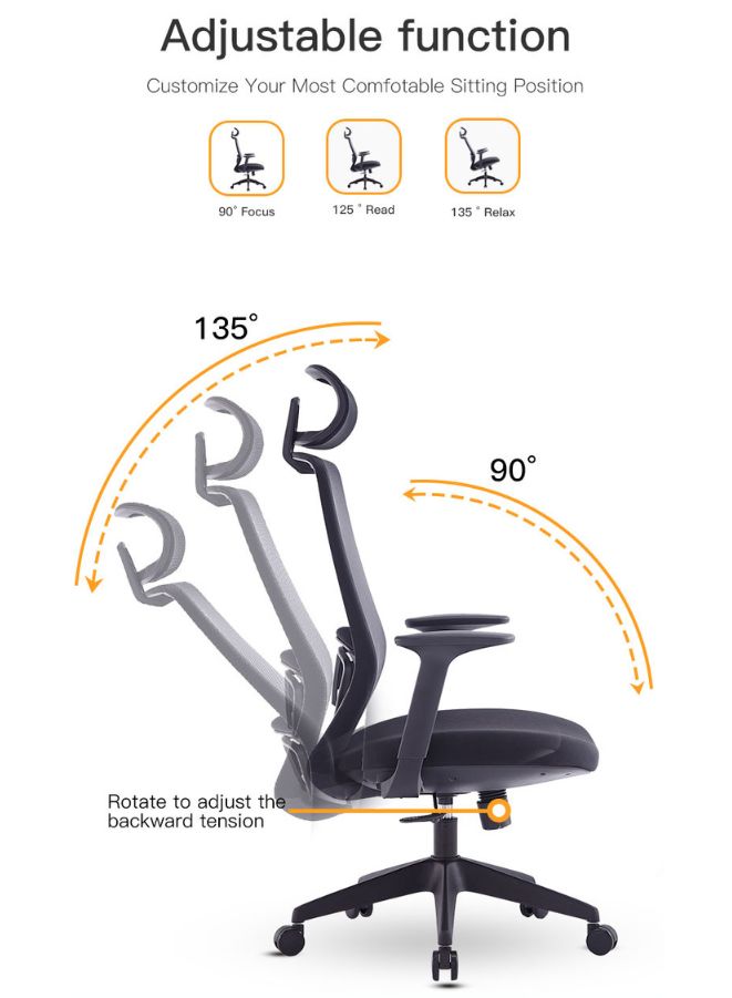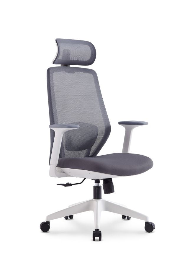 كرسي مكتب شبكي مريح مع مسند رأس قابل للتعديل، ومقعد من الإسفنج المصبوب عالي الكثافة، ومسند ذراع ثابت، وآلية إمالة