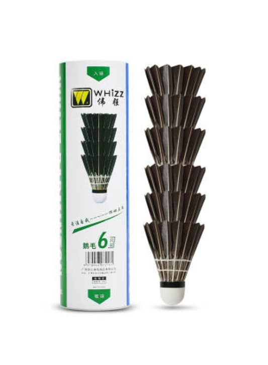Whiz 6 قطع ريشة الريشة المكوكية أوزة منحنية ريشة الريشة كرات التدريب الرياضي كرات الريشة للرياضات الداخلية والخارجية، أسود