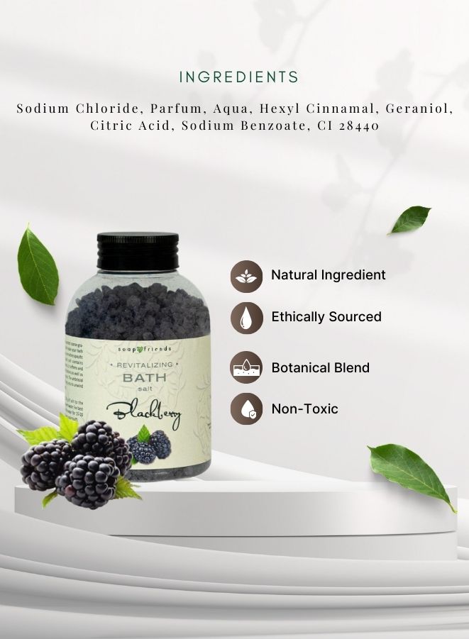 Soap&Friends Juicy Blackberry Bath Salt 500 g is a luxurious bath treatment designed to nourish the skin, promote a youthful glow, and provide a relaxing self-care experience. Made with fine-grained natural salts, it draws on the centuries-old tradition of salt bathing to relax muscles, reduce tension, and support overall wellness. Infused with the rich, fruity aroma of juicy blackberries, this bath salt invigorates the senses while creating a calming, spa-like atmosphere. The fine grains dissolve smoothly in warm water, leaving the skin soft, hydrated, and delicately scented. Ideal for evening relaxation, home spa rituals, or any time you want to indulge in rejuvenating self-care, this 500 g bath salt delivers a generous and refreshing experience. Crafted with natural and cruelty-free ingredients, it ensures safe, ethical, and luxurious skin care for daily or occasional use.