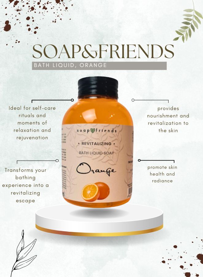 - Elevate your bath time ritual with Soap&Friends Orange with Coumarin Bath Liquid.