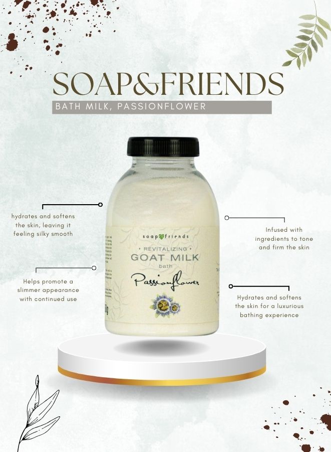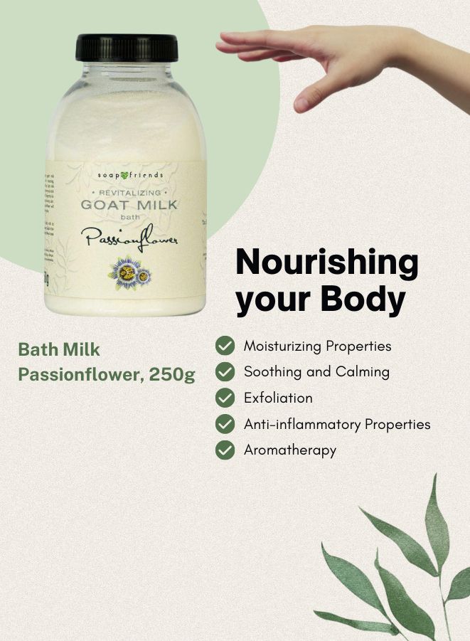 - Nourishing goat milk bath product enriched with passionfruit extract.