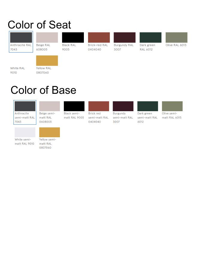 Base - frame made of tube Ø18 mm, wall thickness 2 mm, powder coated, polypropylene feet