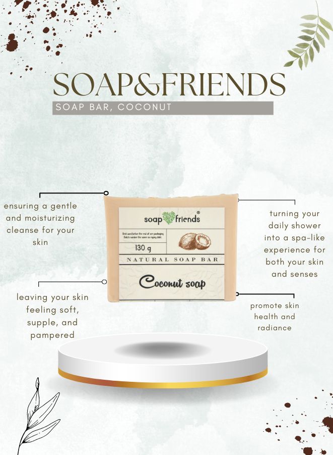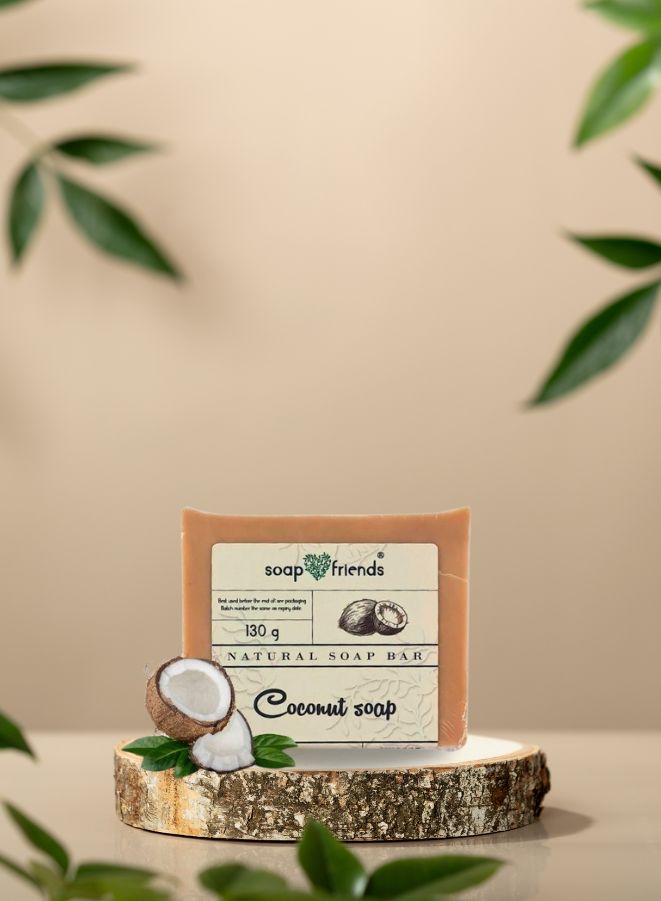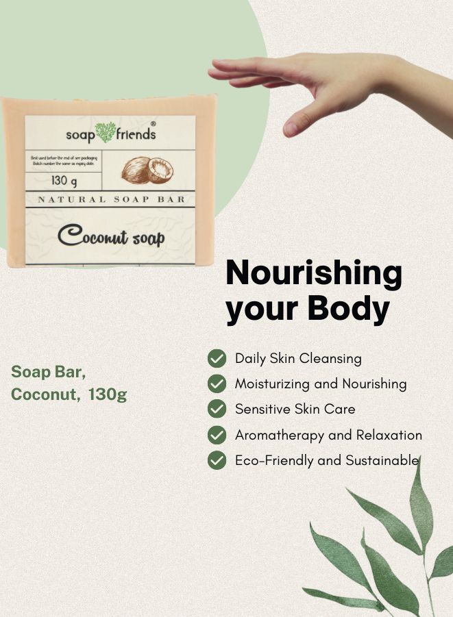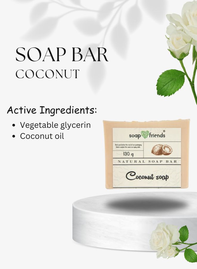 Pure Coconut Soap Bar | 130g Coconut Natural Soap helps Daily Cleanse for Soft and Moisturized Skin | Soap&Friends
