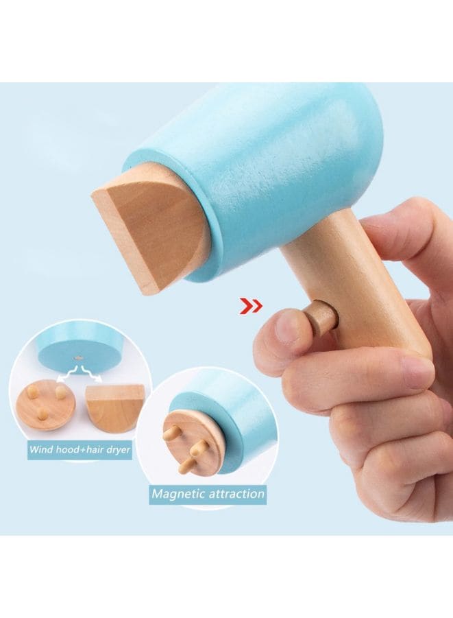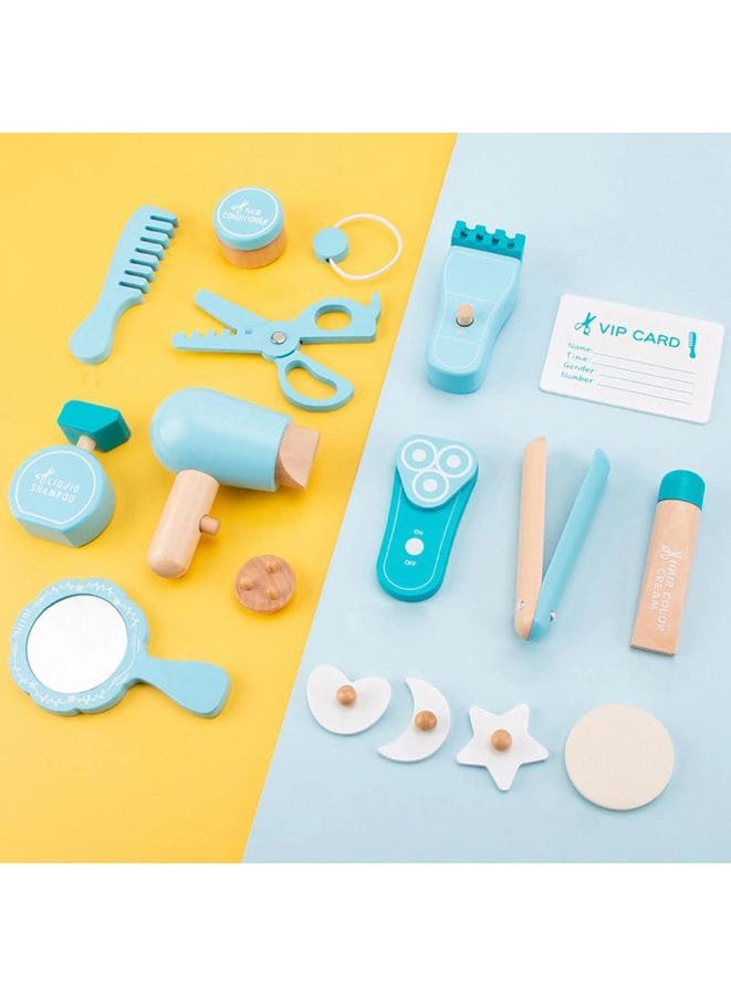 18Pcs Wood Hairdressing Beauty Salon Set, Makeup Toys Set Safe Simulation Haircut Makeup Pretend Play Toy for Kids