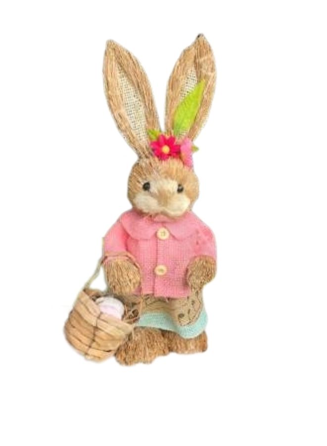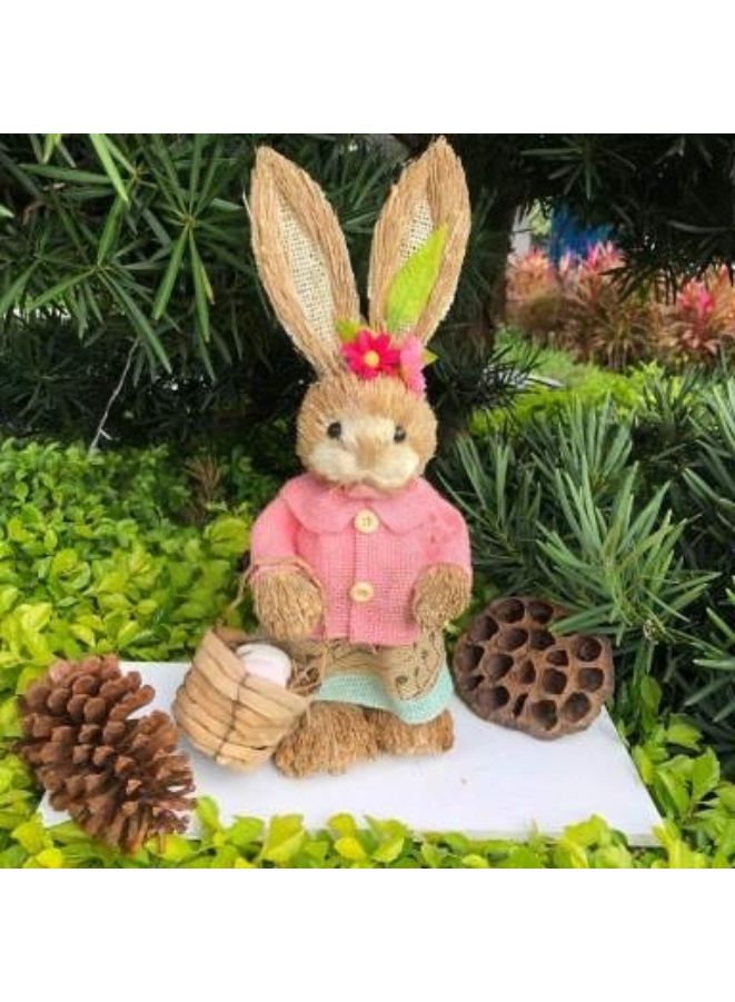 35cm Handmade Pink Straw Bunny | Adorable Easter Rabbit | Rustic Spring Decoration