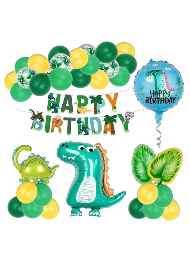 - Complete Dinosaur Party Decor Set: Includes adorable dinosaur balloons, a vibrant Happy Birthday banner, confetti, green latex balloons, and captivating dinosaur and leaf foil balloons.