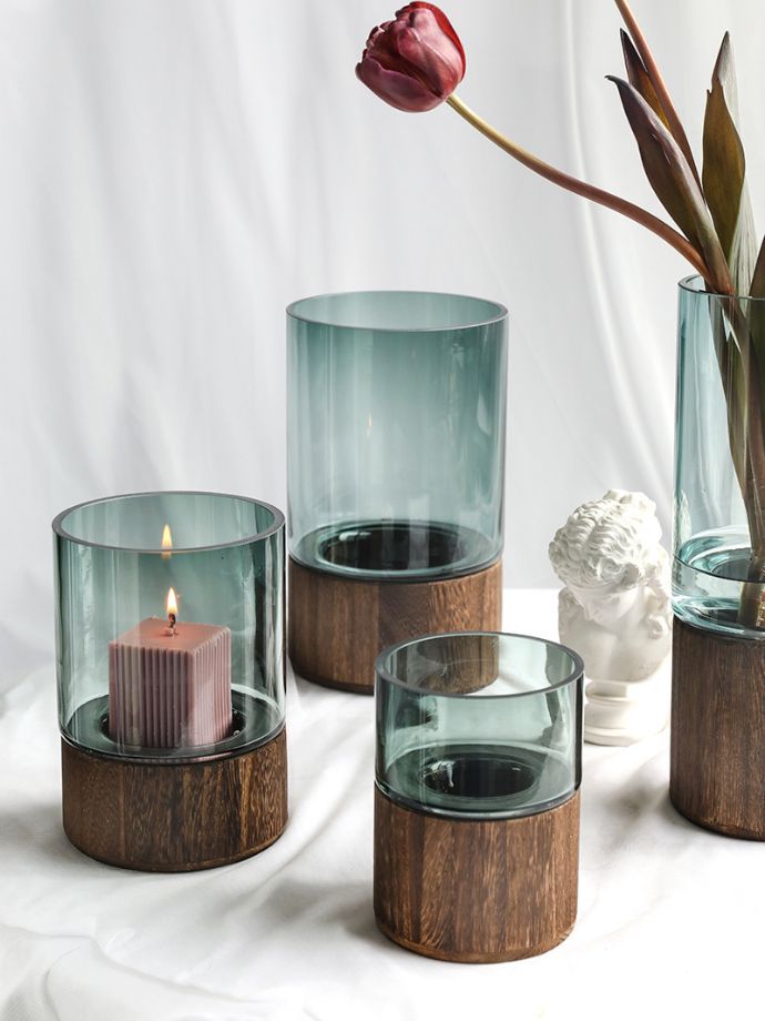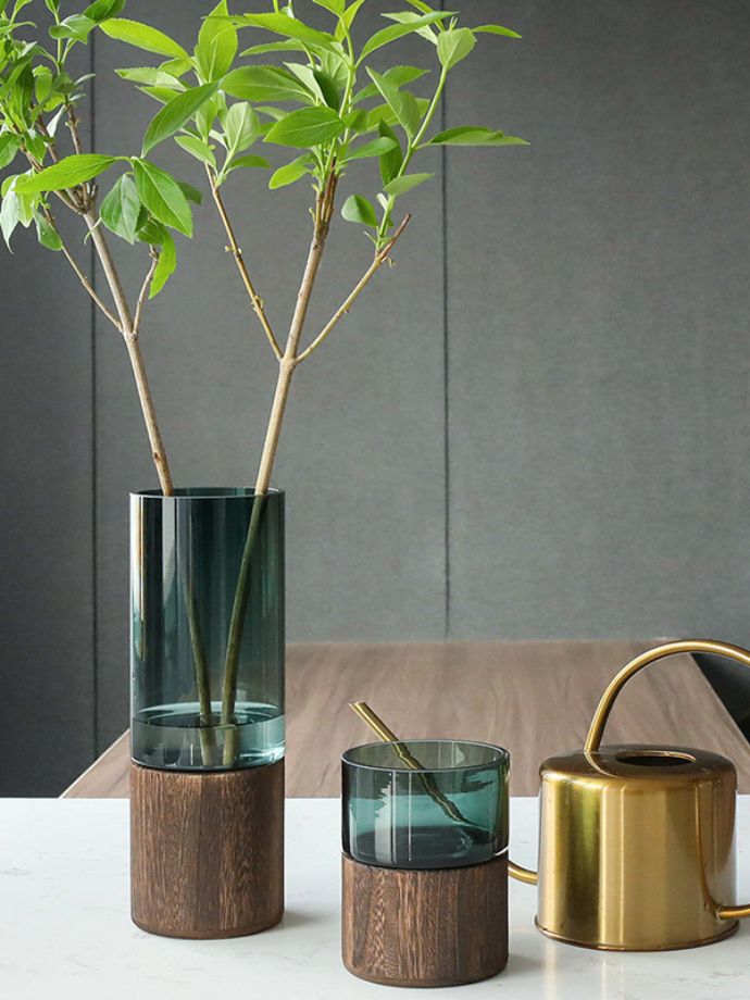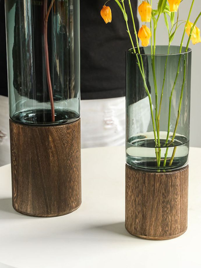 Elegant Glass Flower Vase with Wooden Base - Handcrafted Home Decor for Home and Offices