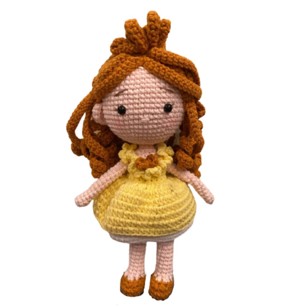 Inspired by classic fairytale characters, this 25cm Belle doll features a beautiful yellow gown, elegant hairstyle, and hand-embroidered features—all designed using traditional crochet techniques. Its simple, plastic-free construction makes it ideal as a safe sleeping buddy or soft playmate for children of all ages.