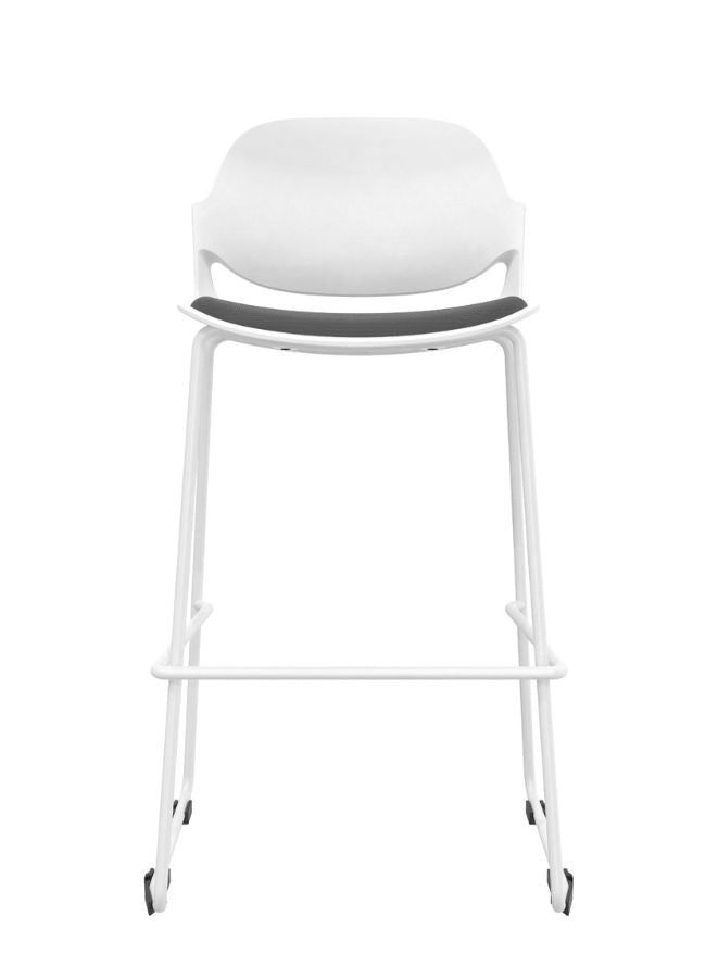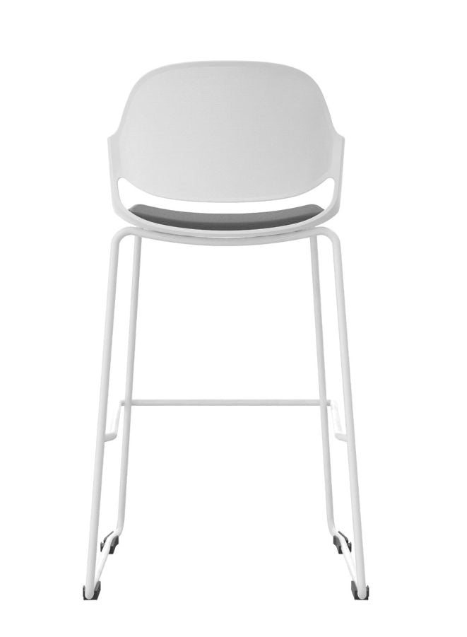 Elevate your bar or kitchen space with this stylish and durable bar stool, designed to offer both comfort and modern aesthetics. The backrest is crafted from PP+ glass fiber, providing a sturdy yet flexible support that ensures lasting durability. The seat features high-density foam, offering a plush and comfortable seating experience for extended periods. Supported by a solid iron leg frame with a Φ16*T1.0mm thickness, this bar stool is finished in a sleek white powder coating, adding a touch of elegance to any setting. Perfect for contemporary homes or commercial spaces, this bar stool combines functionality with a chic design.
