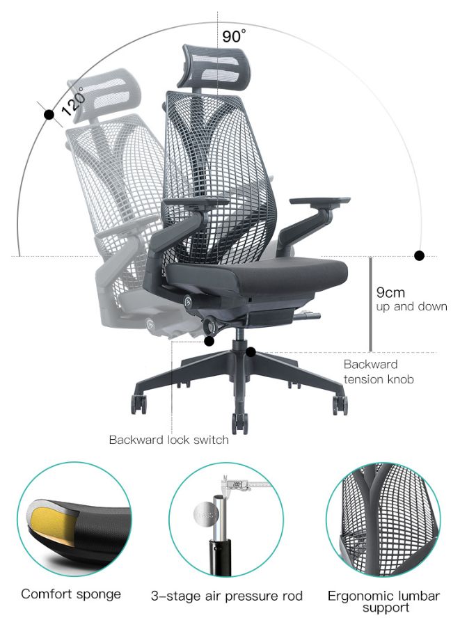 Premium Ergonomic Office Chair with TPEE Back, 4D Armrests & Adjustable Headrest – BIFMA Grade 4 Certified
