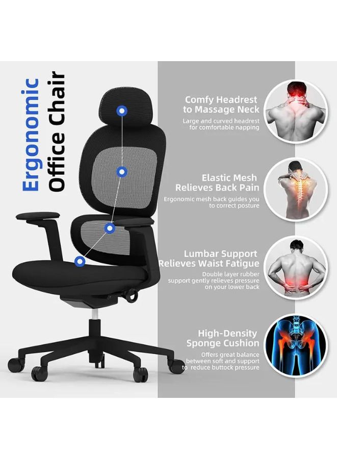 Modern Executive Ergonomic Office Chair With Headrest, Black Base for Office, Home and Shops