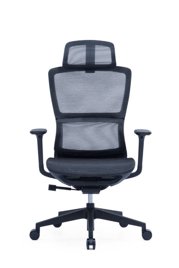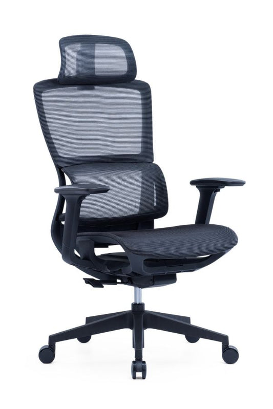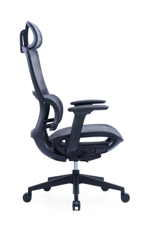 Modern Sleek Mesh Office Chair with 3D Armrests, Headrest and Four-Position Lock for Home or Office