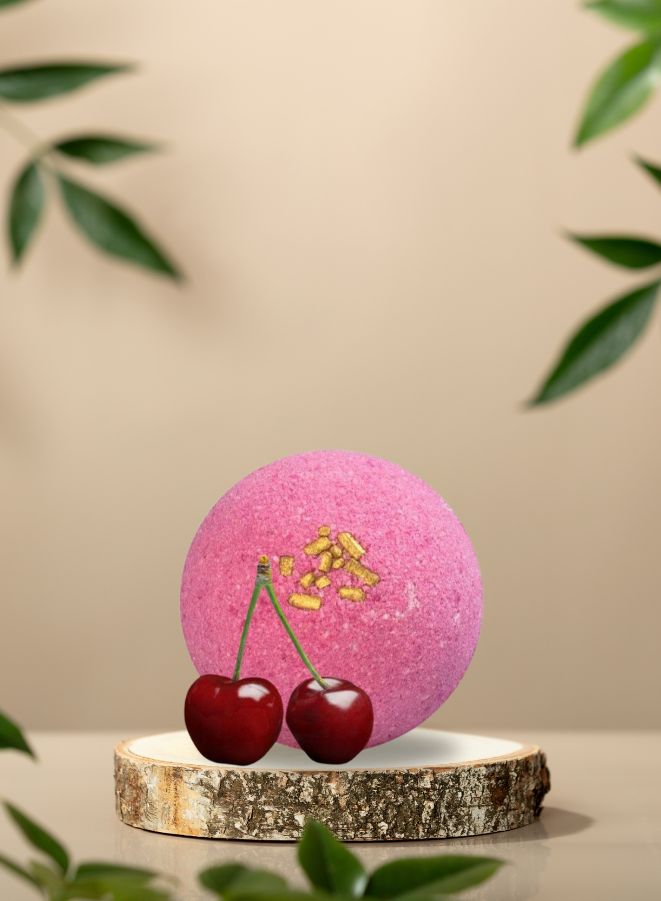– Hydrating & Skin-Softening Formula – Infused with moisturizing oils and gentle botanicals, the cherry bath bomb helps nourish dry skin, leaving it soft, supple, and lightly scented after each soak