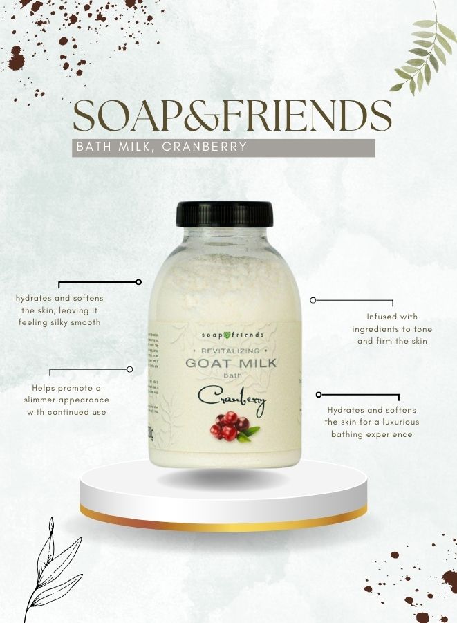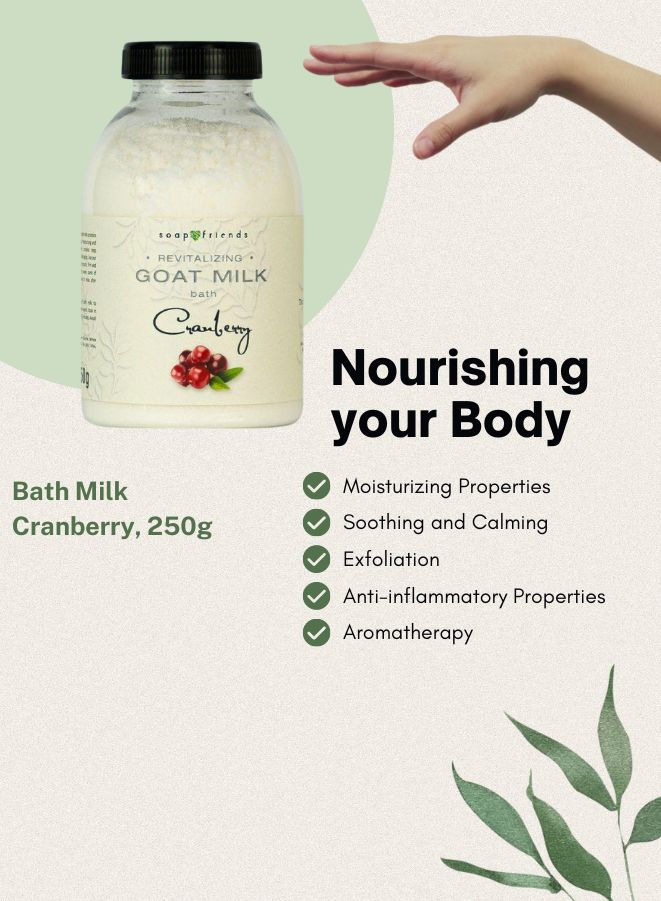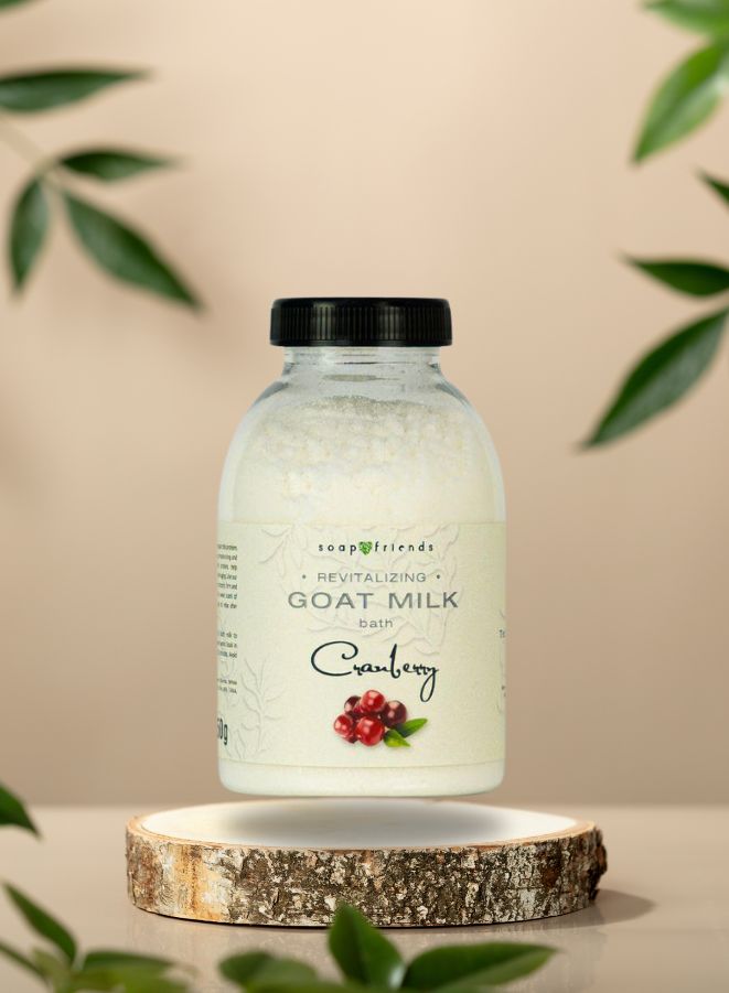 - Nourishing goat milk bath product enriched with cranberry extract.