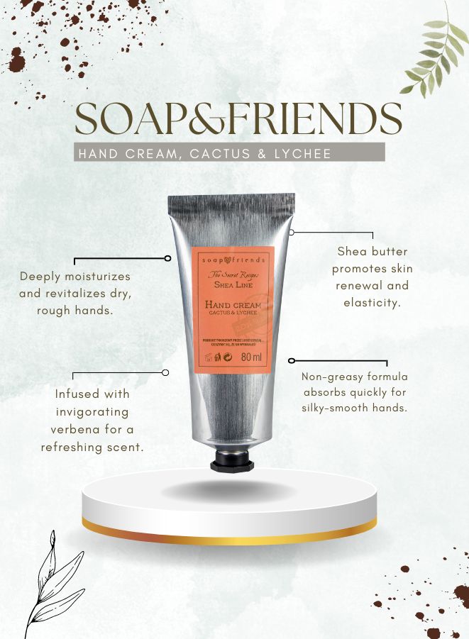 Whether you’re at your desk, on the move, or gifting someone a skincare essential, the 80ml tube offers the perfect balance of convenience, luxury, and care. If you’re looking for a hand cream that’s as bold and vibrant as your personality, Soap&Friends Cactus & Lychee Hand Cream is your ultimate go-to.