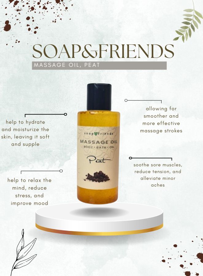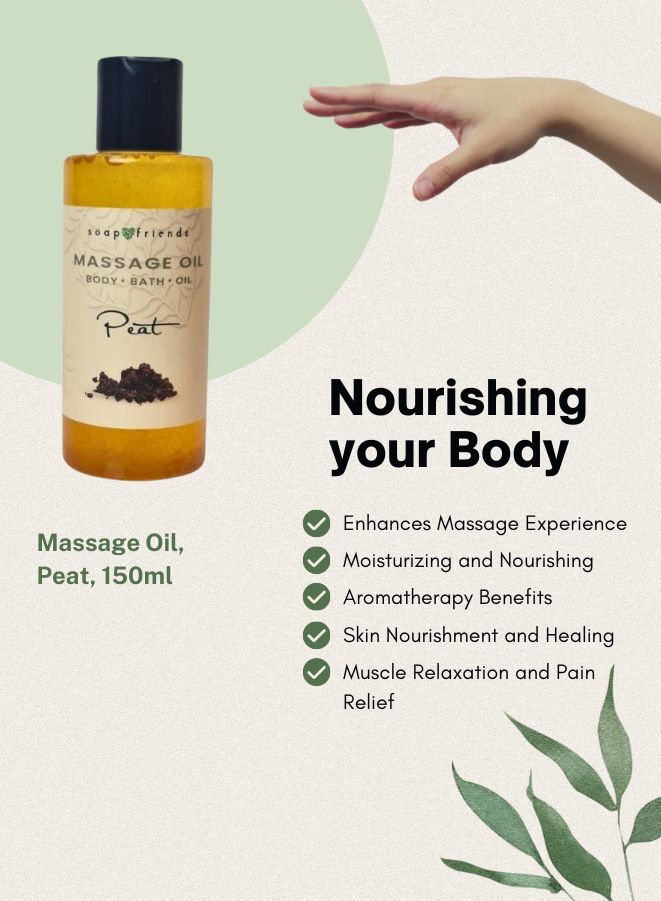 Experience the restorative power of nature with Soap & Friends Peat Natural Body & Massage Oil, enriched with peat extract and nutrient-rich plant oils. This multi-purpose oil deeply nourishes and moisturizes the skin, enhancing firmness and elasticity while promoting a sense of relaxation and well-being. Ideal for body massage, baths, or daily moisturizing, it helps restore vitality to tired skin, supports circulation, and leaves a healthy, radiant glow. Rich in minerals and natural antioxidants, this peat-infused oil protects the skin from dryness and environmental stress, making it perfect for all skin types, including sensitive skin.