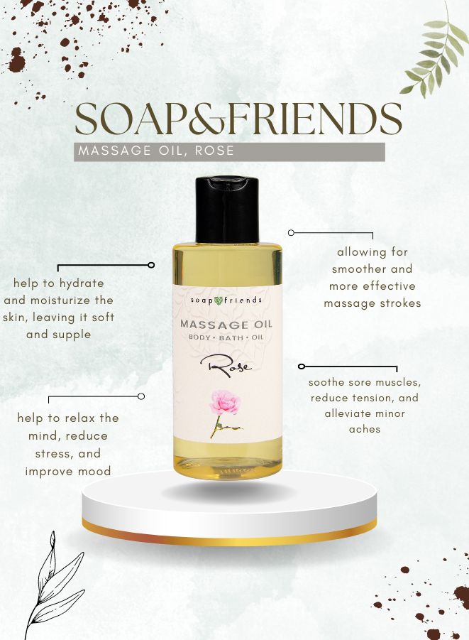 Indulge in a luxurious spa experience at home with Soap & Friends Damask Rose Natural Body & Massage Oil. Enriched with pure rose essential oil and nourishing plant oils, this multi-purpose oil deeply hydrates, softens, and restores skin elasticity while leaving a delicate rose fragrance. Perfect for massages, baths, or daily moisturizing, it calms the senses, reduces tension, and promotes relaxation. Rich in vitamins and antioxidants, it protects the skin from dryness, improves firmness, and helps maintain a youthful, radiant glow. Ideal for all skin types, including sensitive skin, this rose-scented oil transforms your daily skincare routine into a soothing ritual.