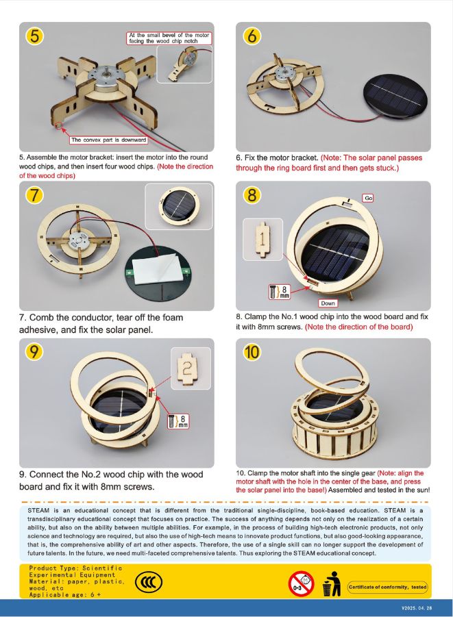 STEM Toy, Wooden Sun Dial, Solar-Powered Montessori Toy, DIY 3D puzzle, eco-friendly, handmade, educational toy