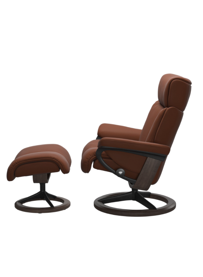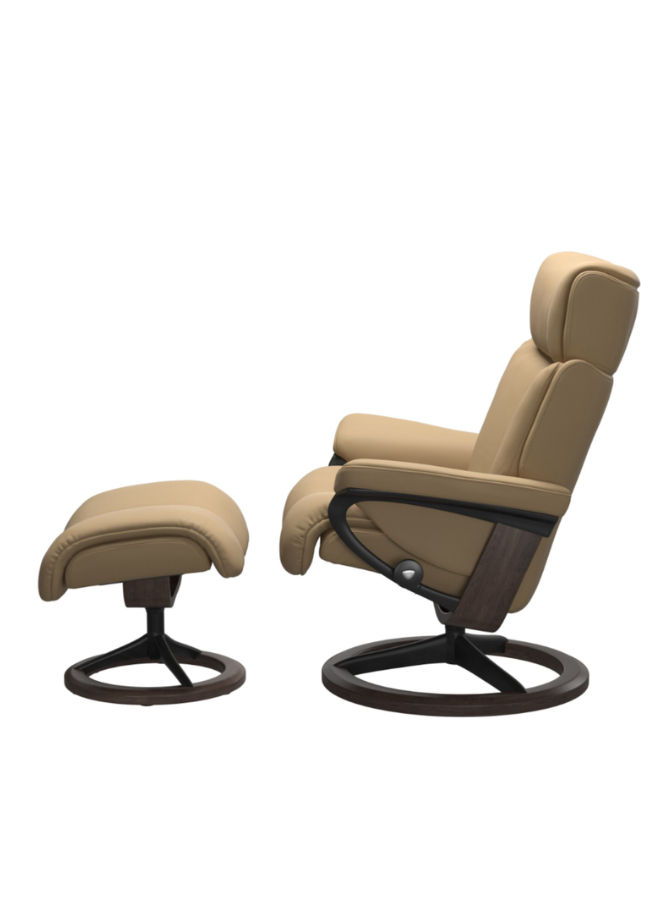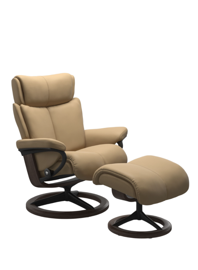 Experience unparalleled comfort with the Stressless® Magic Recliner with Footstool. As the softest chair in the Stressless® collection, the Magic recliner is designed to envelop your body in luxurious support. Its ergonomic design, combined with an adjustable neck rest that extends up to 10 cm, ensures optimal comfort for all users. Available in various high-quality leather and fabric options, the Magic recliner seamlessly blends into any decor, providing both style and relaxation.