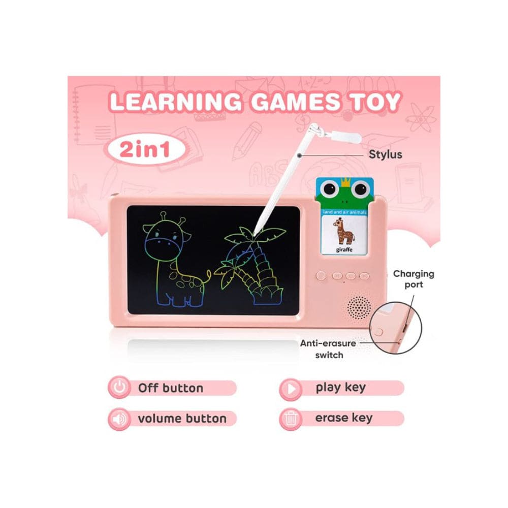 The LCD Writing and Drawing Tablet with English and Arabic Talking Flash Card Reader is an innovative and interactive educational tool for young children. This set includes 112 cards, featuring both words and pictures to help toddlers learn English and Arabic in a fun and engaging way. The LCD tablet allows kids to practice writing and drawing, helping improve their fine motor skills and creativity. The included flashcards enhance vocabulary and language skills, providing a multi-sensory learning experience. Perfect for toddlers and early learners, this product is designed to be both educational and entertaining.